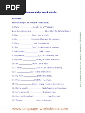 Present Simple And Present Continuous Exercises Elementary Pdf