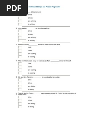 Present Simple And Present Continuous Exercises Multiple Choice Pdf