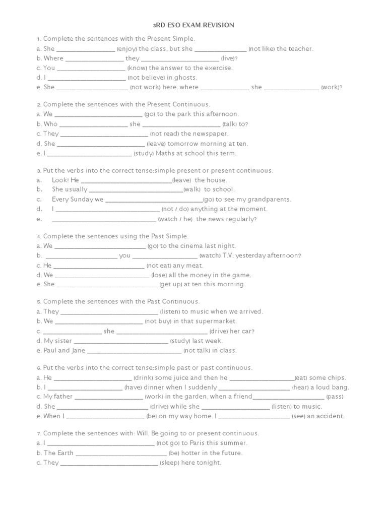 Present Simple And Present Continuous Exercises 3 Eso Pdf Site Raejovi57