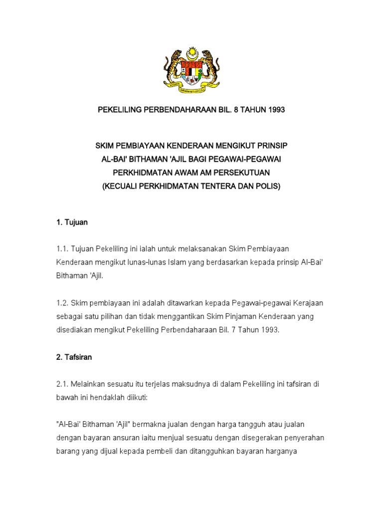 Skim Pinjaman Kenderaan Mengikut Prinsip Al Bai Bithaman Ajil
