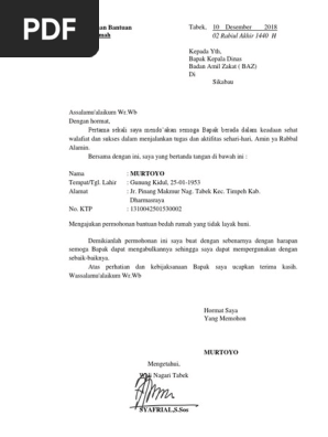 Contoh Surat Permohonan Bantuan Dana Baznas Berbagai Contoh