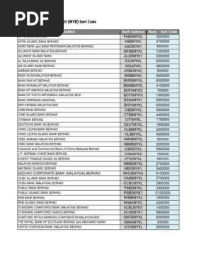 Swift Codes Bic Of All Malaysia Banks Poster Code Branches