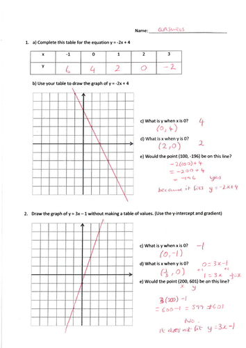 Ks3 Worksheet For The Line Equation Y Mx C Teaching Resources