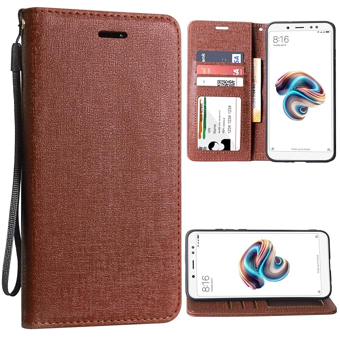 Amazon Brand Amazon Brand Solimo Leather Wallet Flip Case Cover For Mi Redmi Note 5 Pro Classic Brown Amazon In Electronics
