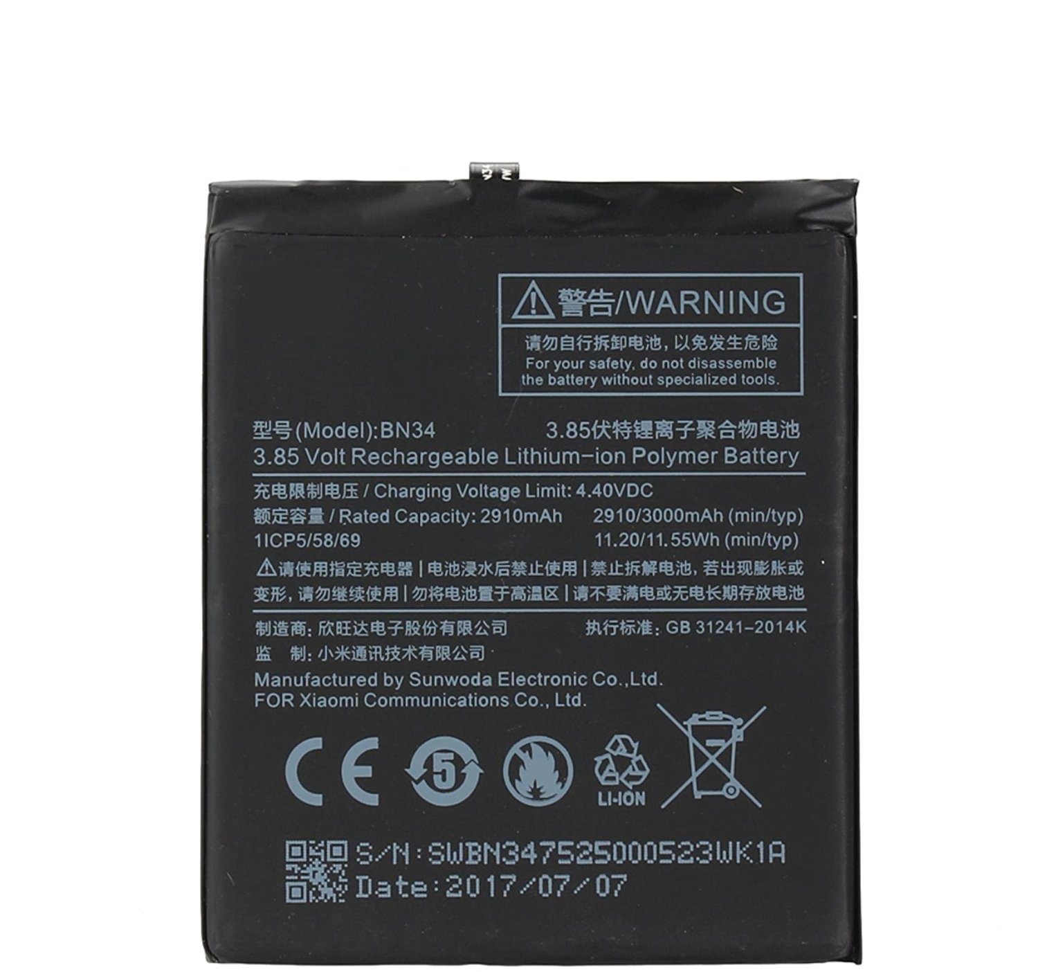 Sharbros Battery Model Bn34 3000 Mah Compatible With Xiaomi Mi Redmi 5a Amazon In Electronics