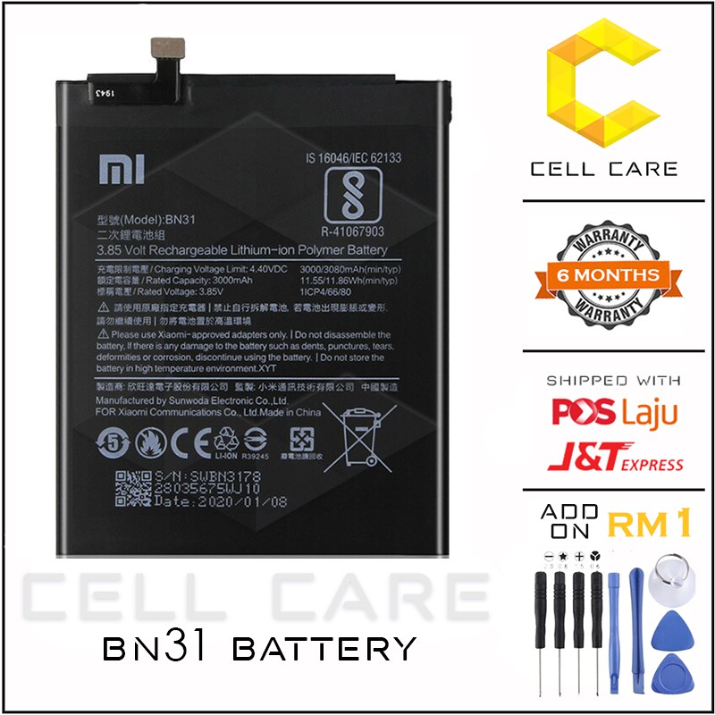 Cellcare Xiaomi Redmi Note 5a Note 5a Prime Mi A1 Mi 5x Redmi S2 Battery Bn31 3000 Mah Shopee Singapore
