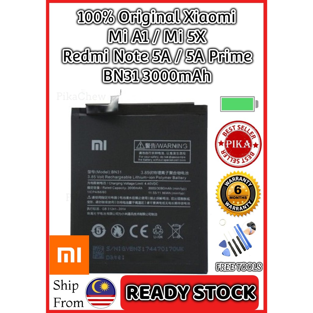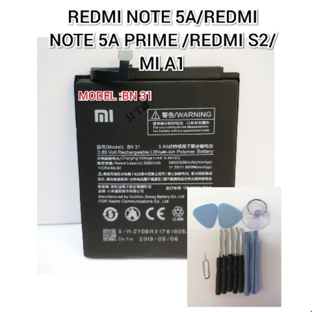 6 6 Bateri Xiaomi Bn31 Redmi Note 5a Note 5a Prime Mi A1 Mi 5x Redmi S2 High Quality Battery Capacity 3000mah Shopee Singapore