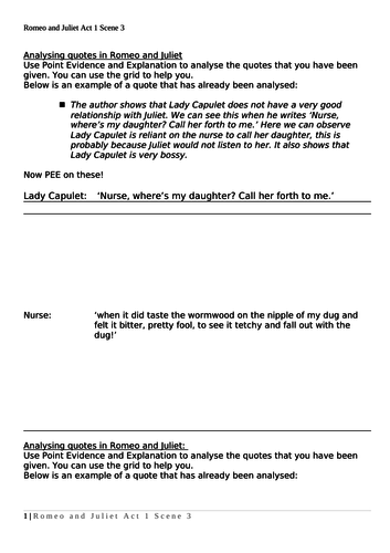 Romeo And Juliet Act 1 Scene 3 Quotes Analysis Teaching Resources