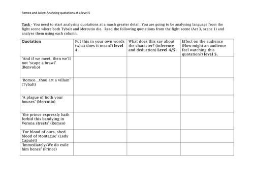 Romeo Juliet Analysing Quotations Act 3 Scene 1 Teaching Resources