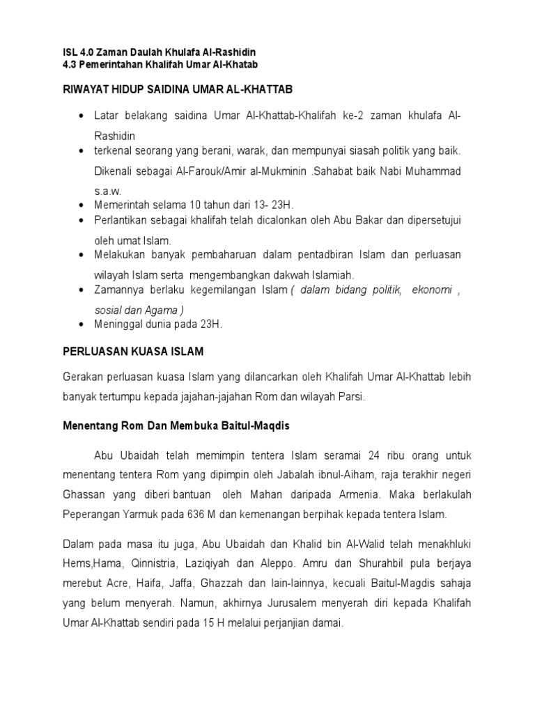 Doc Tajuk Pembaharuan Yang Berlaku Di Zaman Khalifah Umar Al Khattab Aishah Mohd Rani Academia Edu