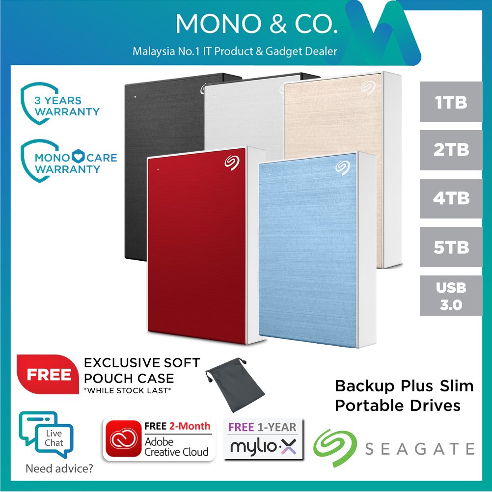 Seagate External Hard Disk 5tb 4tb 2tb 1tb Backup Plus Slim Usb 3 0 Portable Hdd External Hard Drive Free Pouch Shopee Singapore