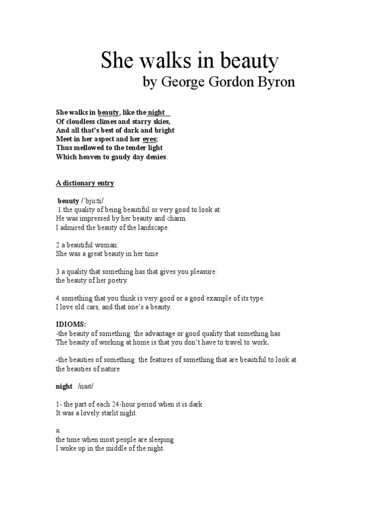 A Complete Analysis Of She Walks In Beauty Write A Writing