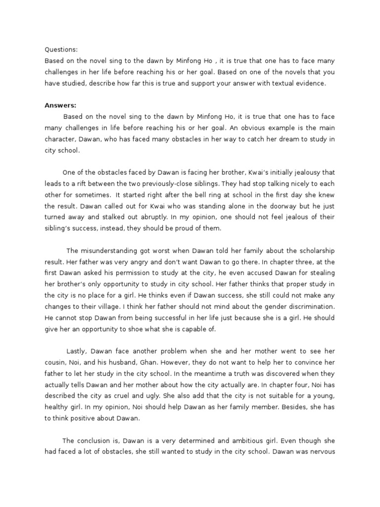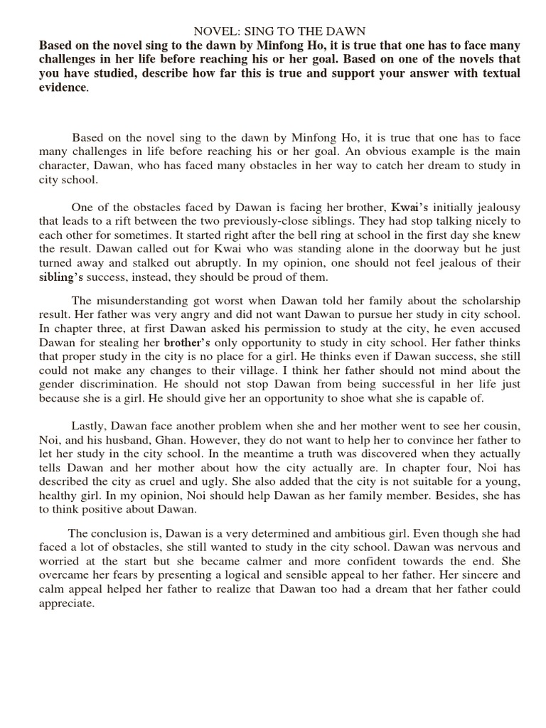 321436053 Spm Novel Sing To The Dawn Sample Answer A Character You Sympathise With Pdf Based On The Novel You Have Studied Which Character Do You Course Hero