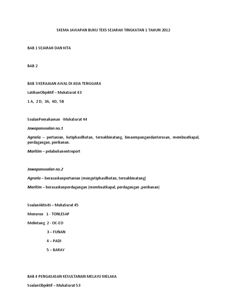 Skema Jawapan Buku Teks Sejarah Tingkatan 1 Tahun 2012