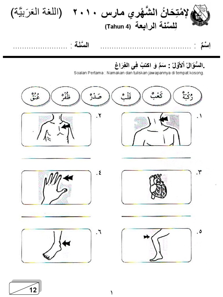Bahasa Arab Tahun 4 Ujian Mac 2010