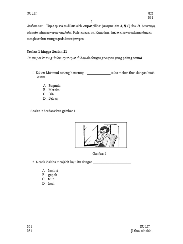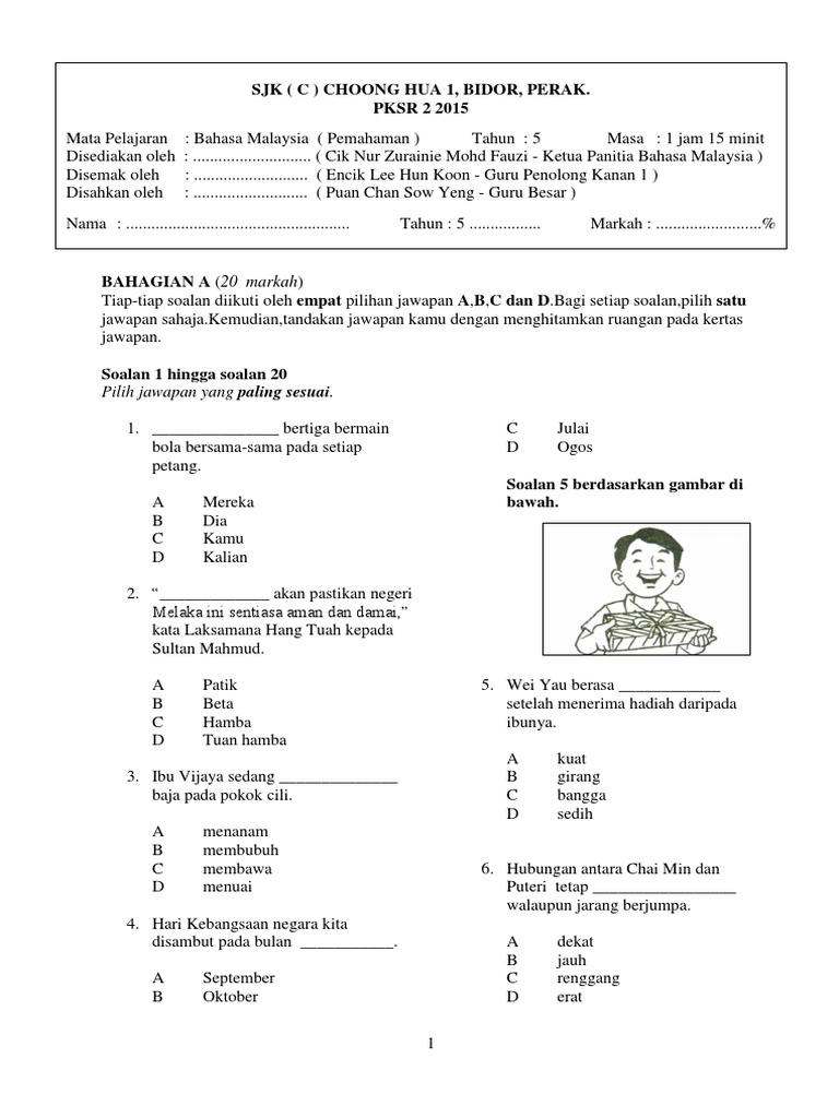 Soalan Bm Bahasa Melayu Pemahaman Tahun 5