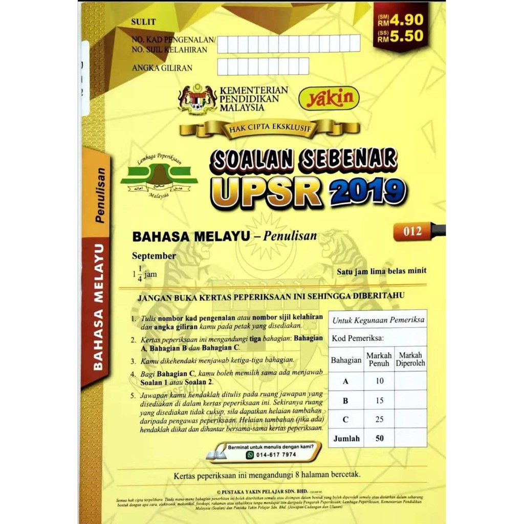 Kertas Soalan Peperiksaan Sebenar Upsr Sk Bahasa Melayu Penulisan Shopee Singapore