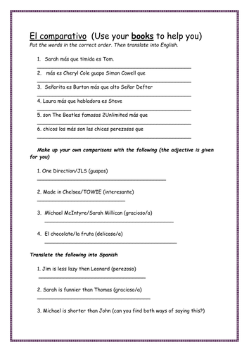 Comparative And Superlative Spanish Worksheets Teaching Resources Tpt