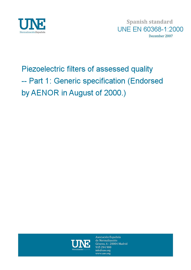 Une En 60368 1 2000 Piezoelectric Filters Of Assessed Quality Part 1 Generic Specification Endorsed By Aenor In August Of 2000 European Standards