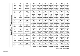 Spanish Numbers 0 100 Chart Pflag