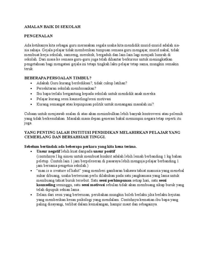 Contoh Amalan Baik Murid Di Sekolah