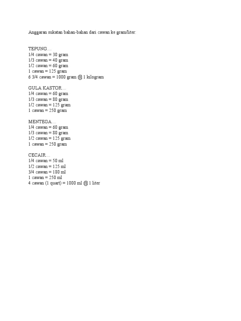 Cara Mengira Sukatan Cawan Ke Gram Dan Liter Serta Suhu Ketuhar Mamaqaireen
