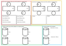 Surface Area Of A Cylinder Worksheet Teaching Resources