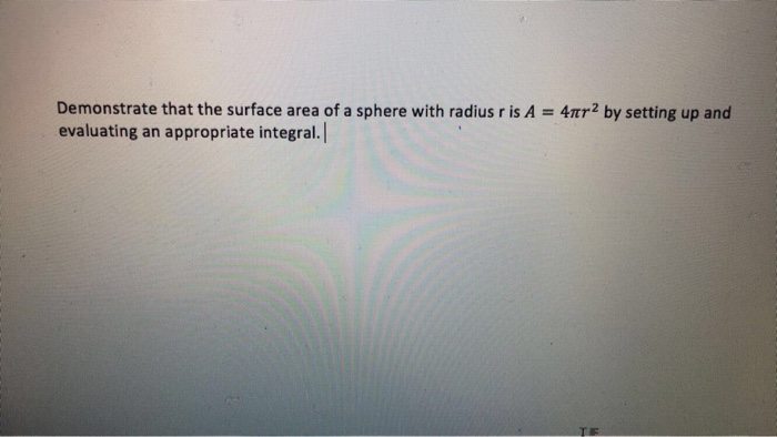 Solved Demonstrate That The Surface Area Of A Sphere With Chegg Com