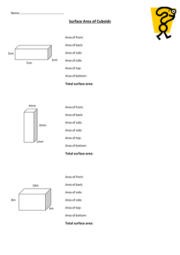 Volume And Surface Area Of Cuboids Exercise Teaching Resources