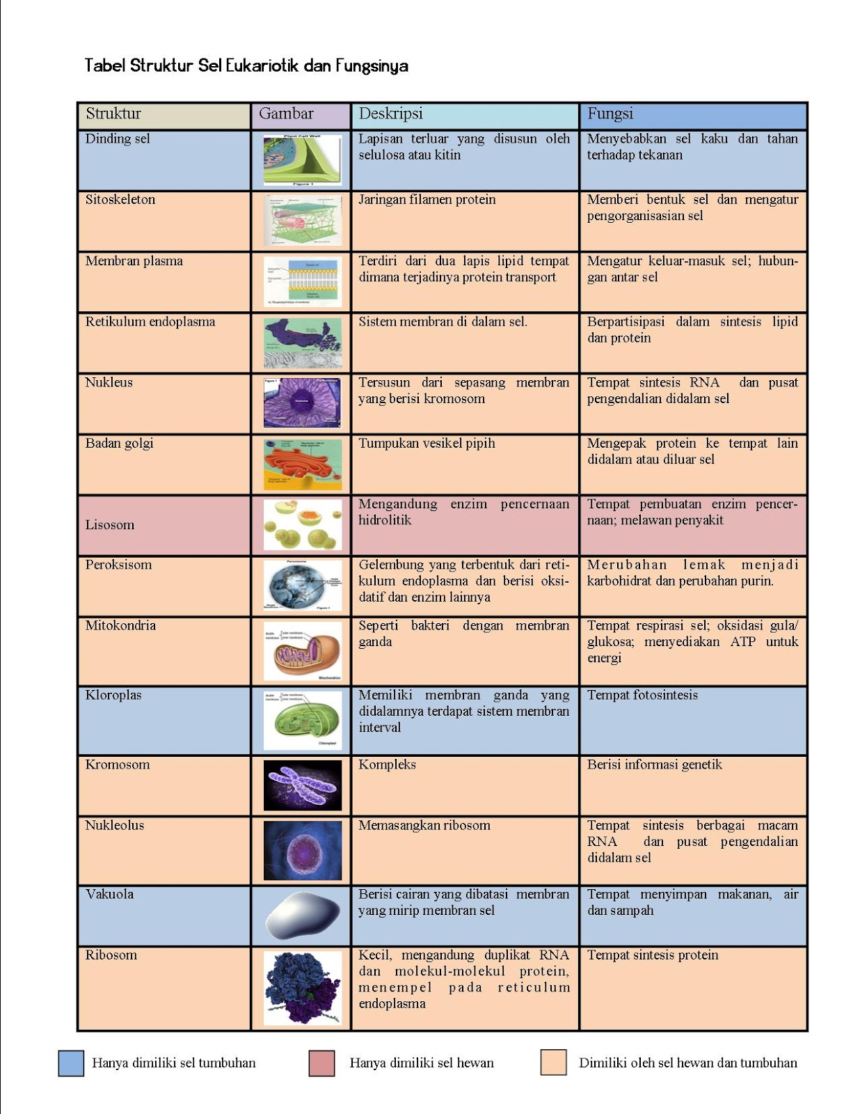 Tabel Organel Sel Hewan Dan Tumbuhan Beserta Fungsinya