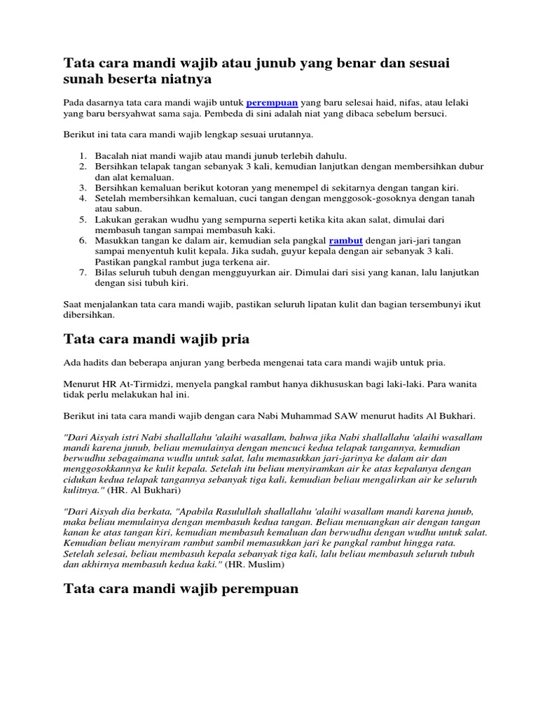 Tata Cara Mandi Wajib Sangat Lengkap Doa Niat Dll Riuh Imaji