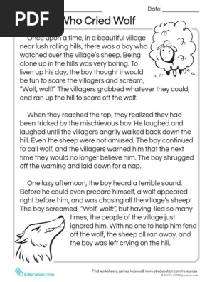 The Boy Who Cried Wolf Worksheet For 5th Grade Lesson Planet