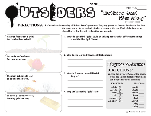 The Outsiders Nothing Gold Can Stay Poem Analysis Interactive Worksheet By Renee Sullivan Wizer Me