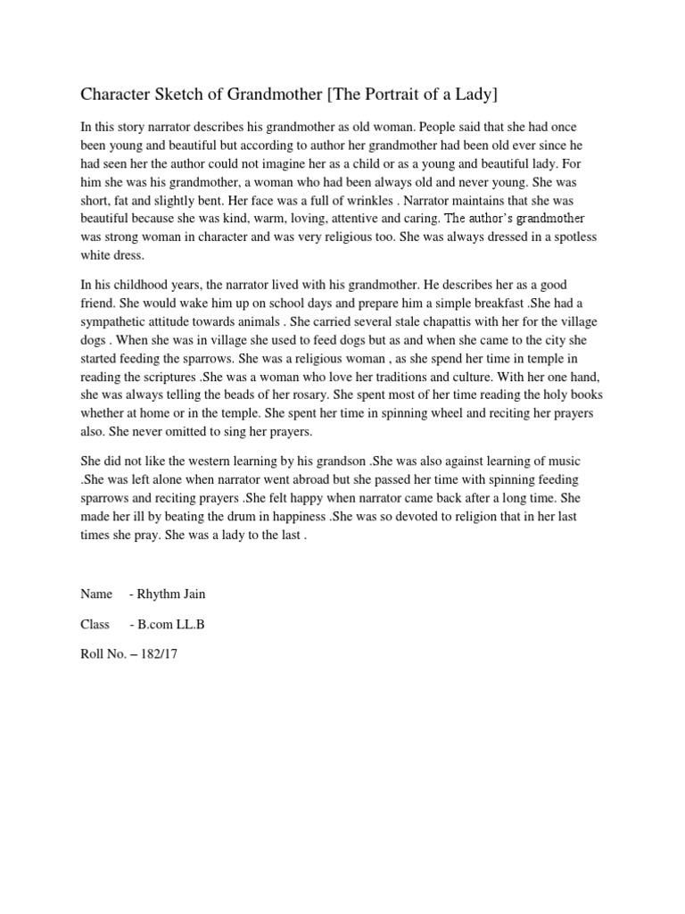 Write A Character Sketch Of The Author S Grandmother Under The Following Points 1 Caring 2 Kind 3 English The Portrait Of A Lady 9368697 Meritnation Com