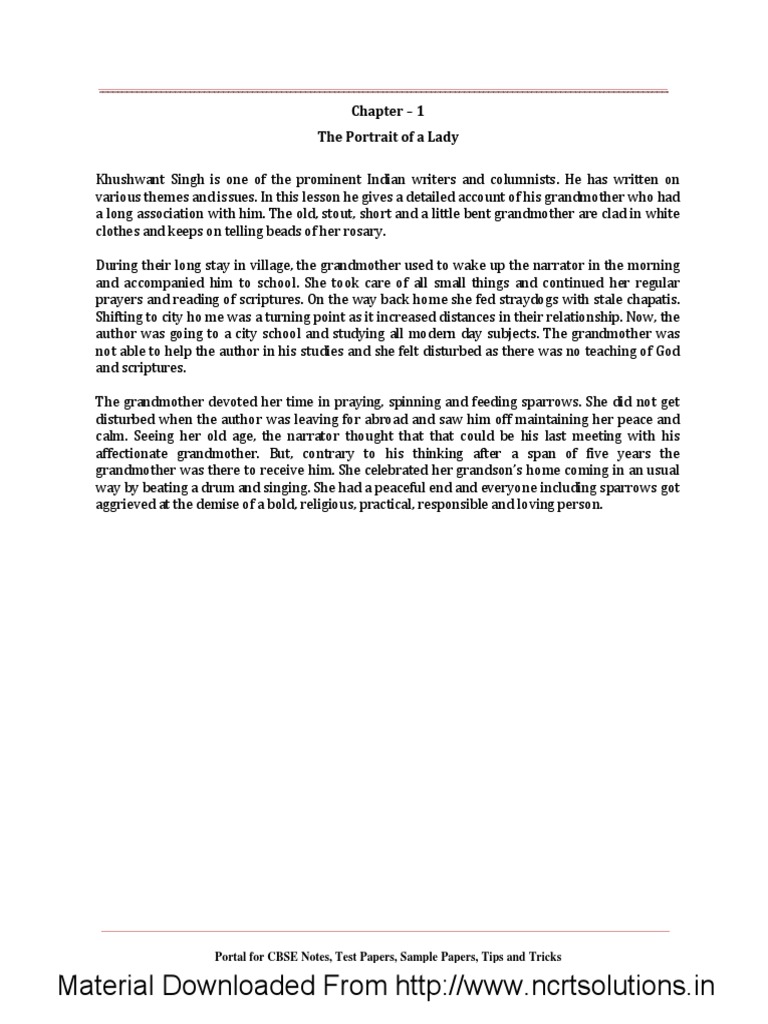 A Portrait Of A Lady Summary Class 11 English Chapter 1 Explanation Question Answer