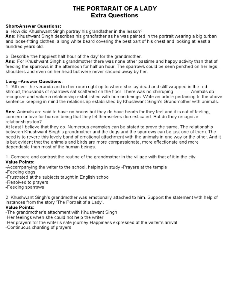 The Portrait Of A Lady Class 11th Plz Give Me Some Extra And Important Questions Plzz It S My Unit Brainly In