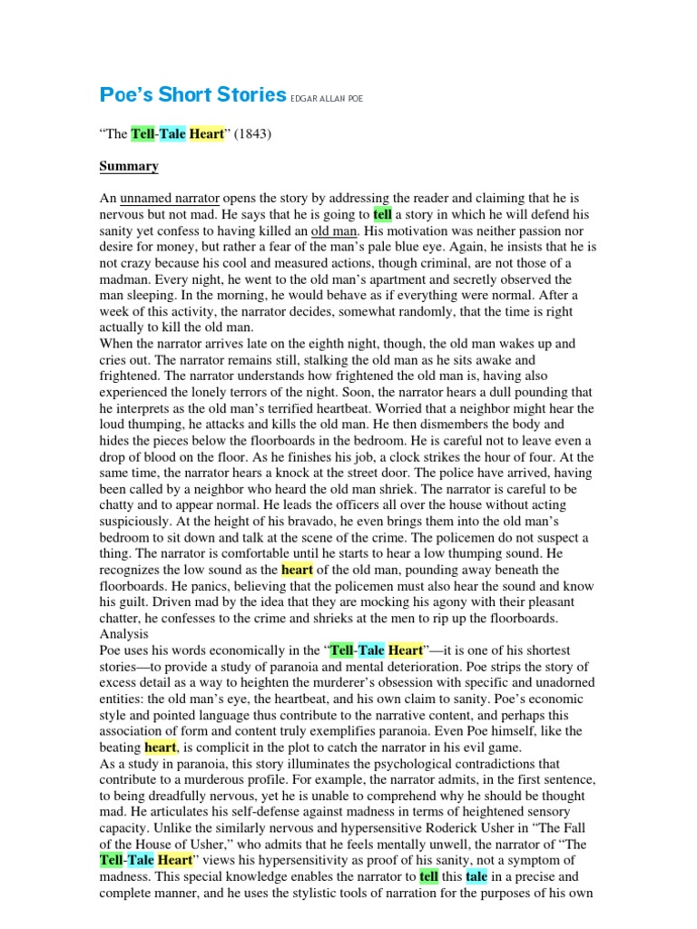 Doc The Tell Tale Heart 1843 Summary Sabber Ayoub Academia Edu