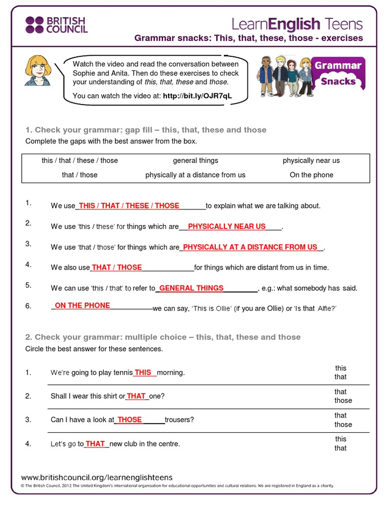 English Exercises This That These Those Pdf File