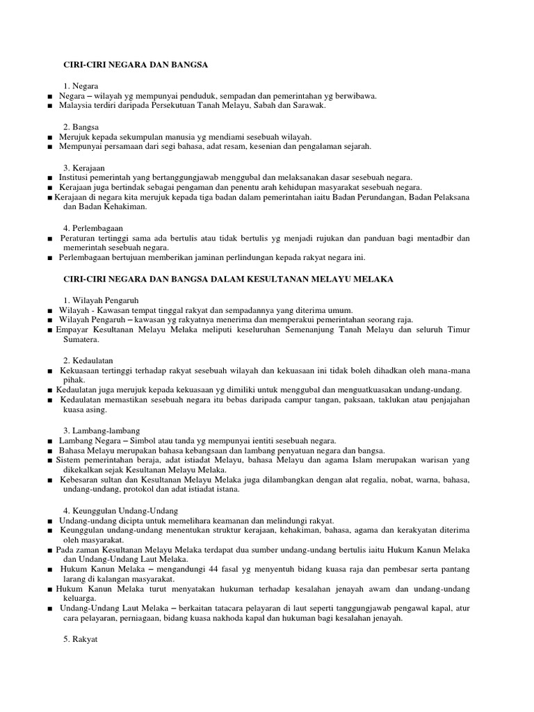 Ciri Ciri Negara Dan Bangsa Dalam Kesultanan
