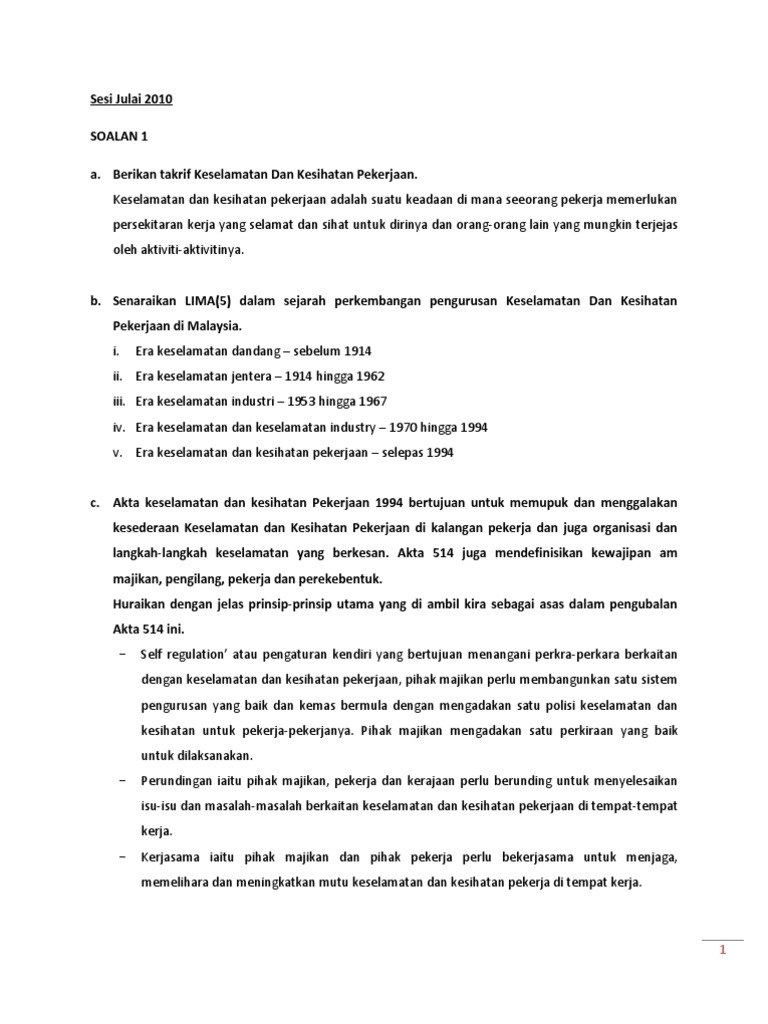 Akta Keselamatan Dan Kesihatan Pekerjaan Osha 514 Nota Kejuruteraan Teknologi Elektrik Vokasional Politeknik Ikm Ilp Universiti