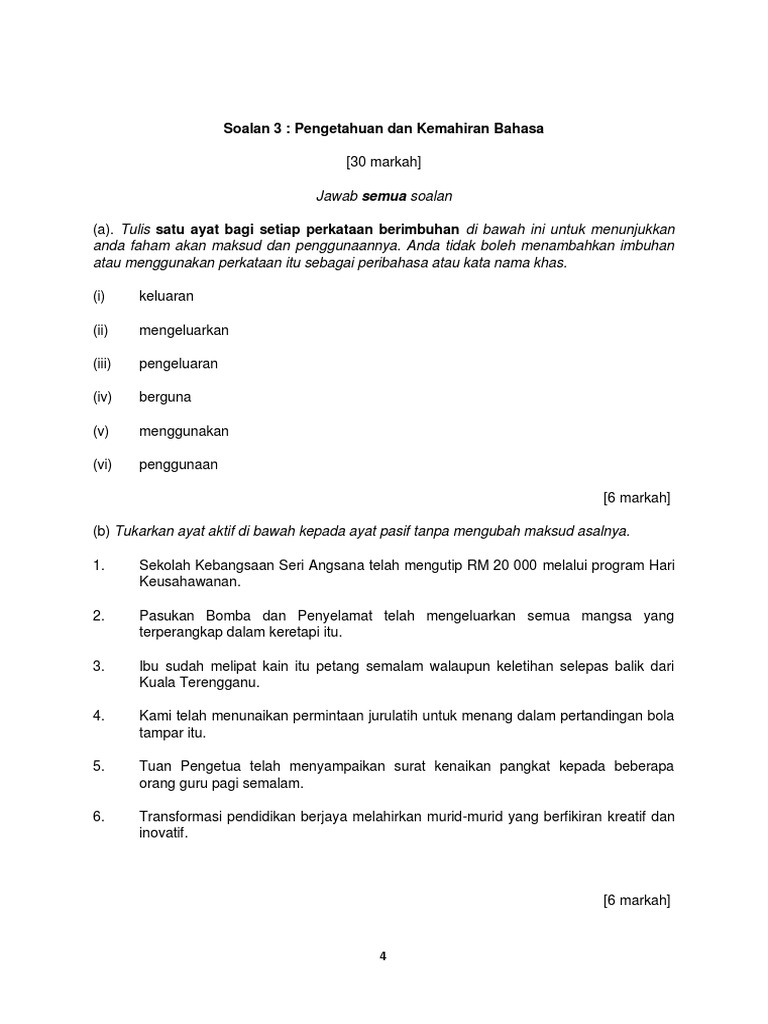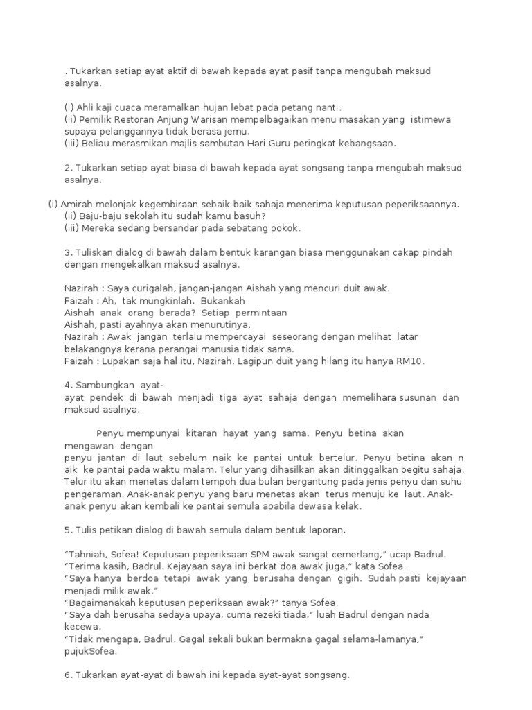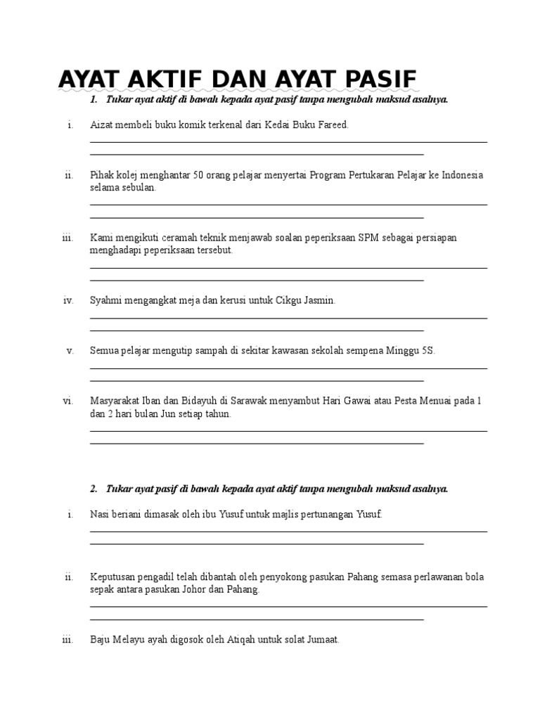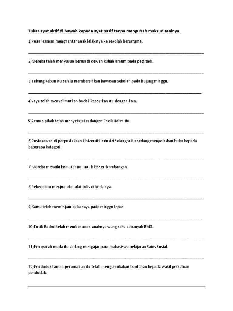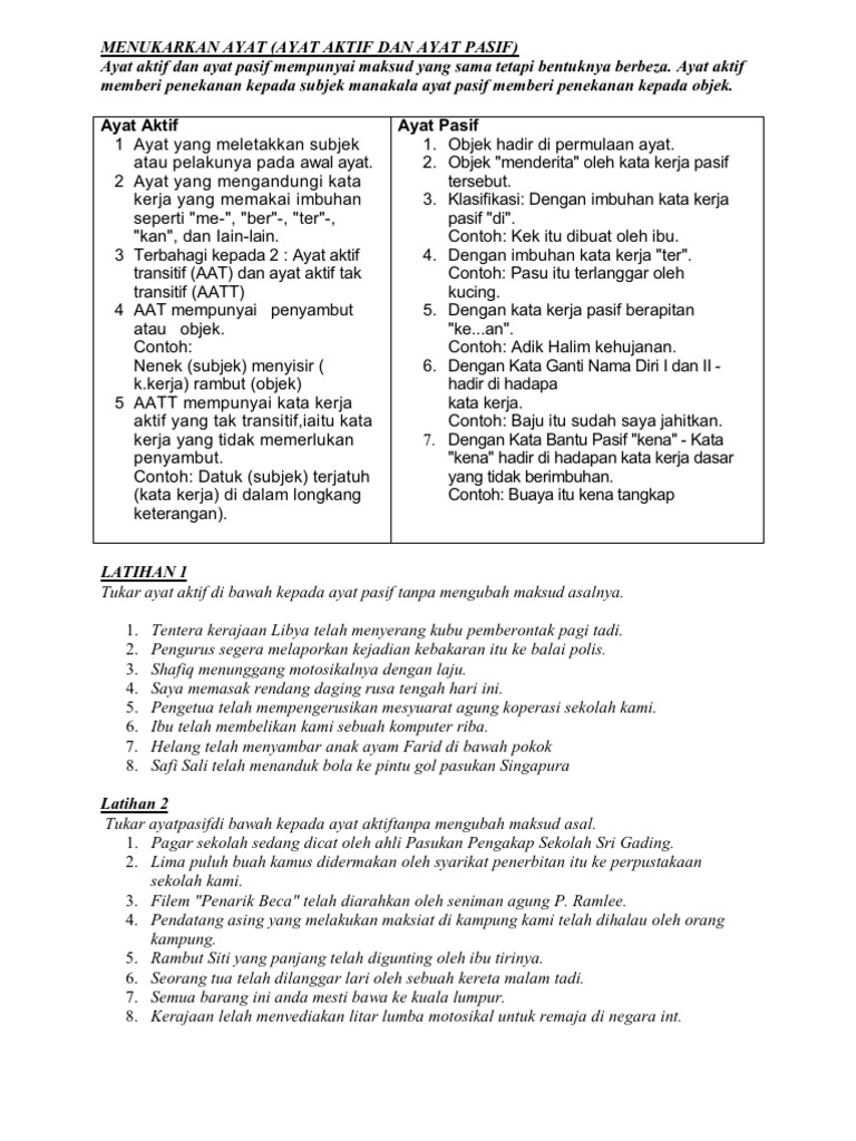 Latihan Membina Ayat Dan Ayat Aktif Dan Ayat Pasif Spm