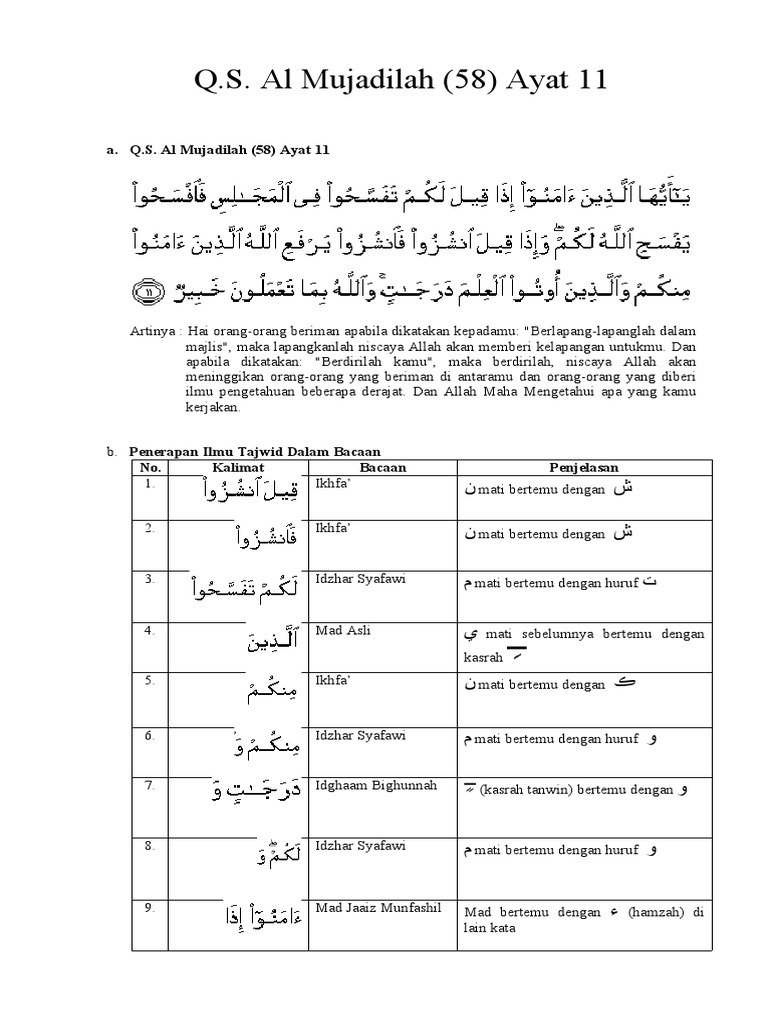 Hukum Tajwid Al Quran Surat Al Mujaadilah Ayat 11 Lengkap Penjelasan Latin Dan Artinya
