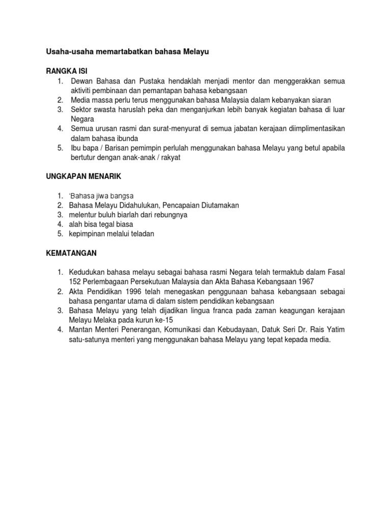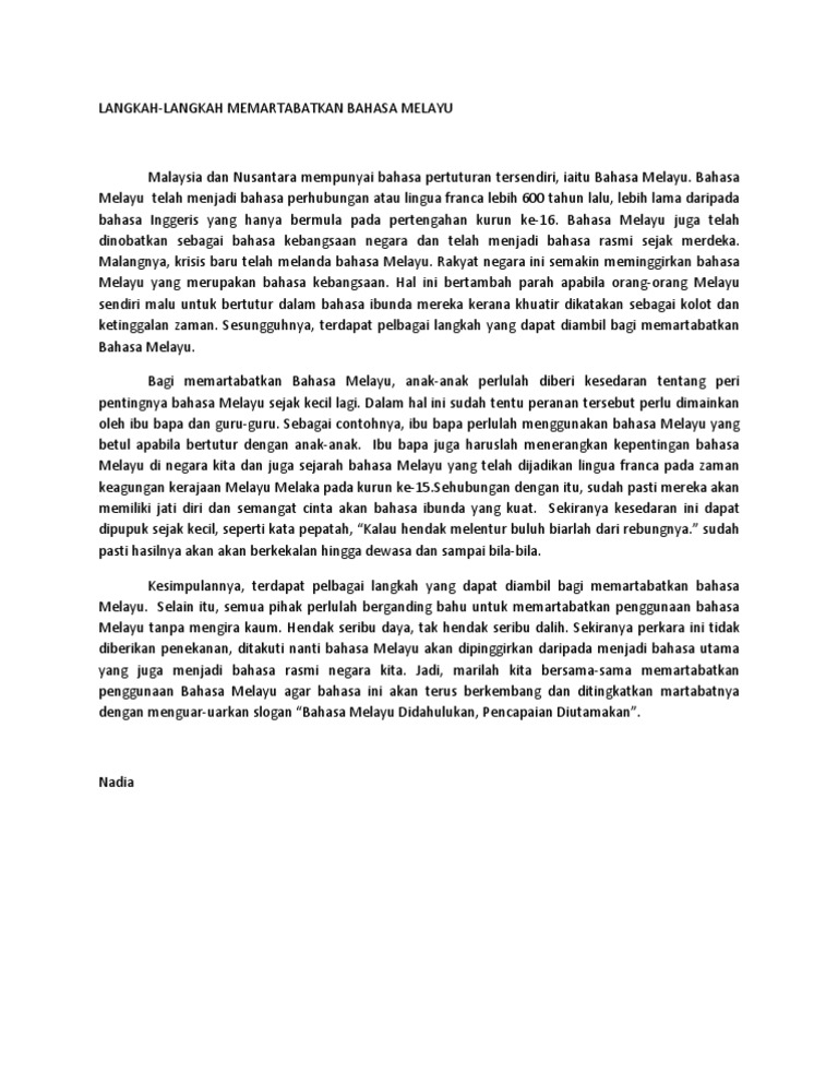 Karangan Bm Spm Langkah Langkah Memartabatkan Bahasa Melayu