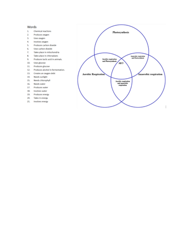 Aerobic Respiration Anaerobic Respiration And Photosynthesis Teaching Resources