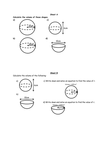 Volume And Surface Area Of A Sphere Worksheet Tes
