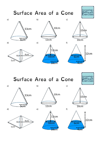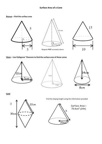 Increasingly Difficult Questions Surface Area Of A Cone Teaching Resources