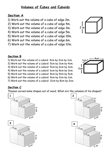 Volumes Of Cubes And Cuboids Ks2 Ks3 Word And Pdf Files Example Q On 1st Page Answers Page 4 Teaching Resources