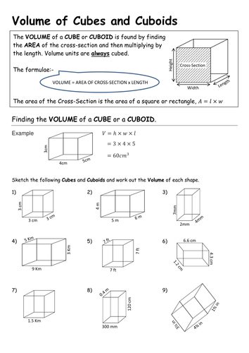Volume Of A Cube And Cuboid Worksheet Tes