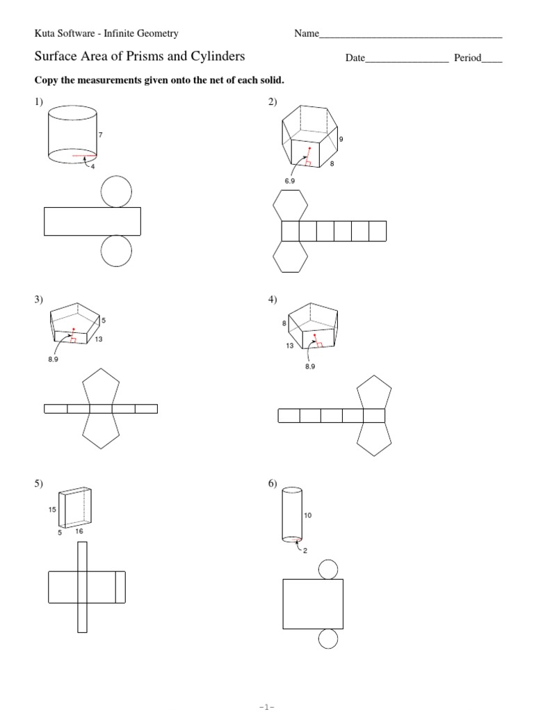 10 Surface Area Of Prisms And Cylinders Kuta Software