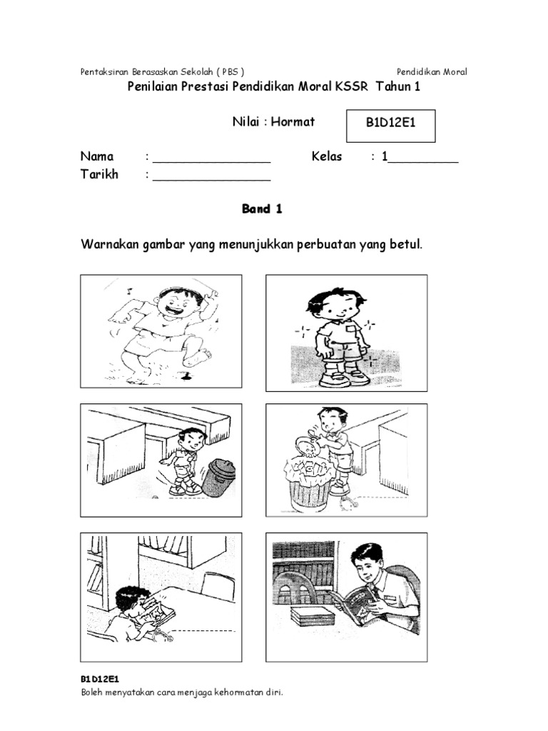 Evidens Pbs Pendidikan Moral Tahun 1 Nilai Hormat Band 1 6